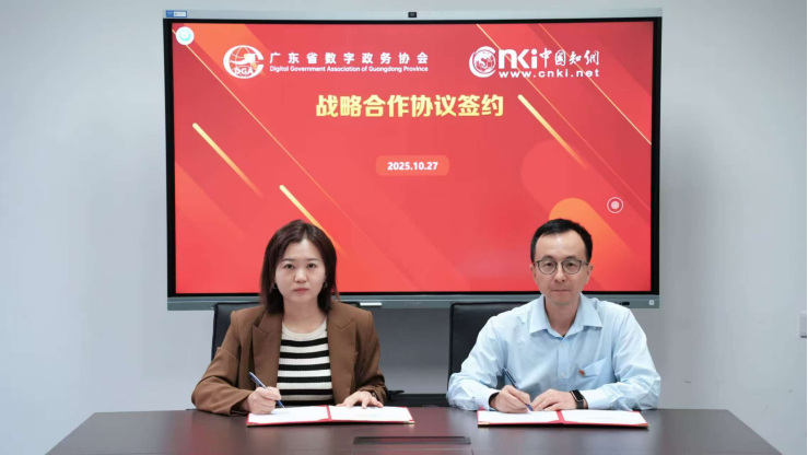 2025年10月27日,广东省数字政务协会与同方知网数字科技有限公司在“党建领航·知网助力·共建共筑·创新未来”联合主题党日活动中正式签署战略合作协议。签约仪式由同方知网数科华南区总经理程晓花与广东省数字政务协会秘书长林敏锐代表双方签署。